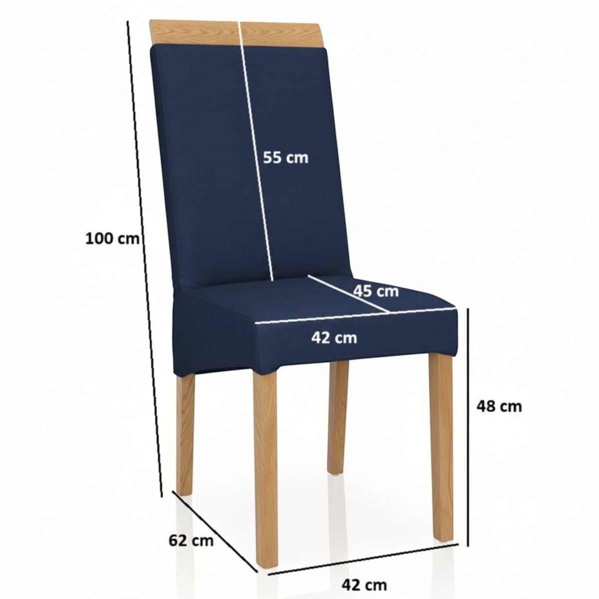 Podstawą modelu KT2 jest stelaż z litego drewna bukowego o wybarwieniu dębu naturalnego. Nasze krzesła to konstrukcje w pełni czopowane i klejone. Największa korzyść dla klienta? Krzesła przyjeżdżają w całości. Otrzymujesz stabilny, gotowy do użytku mebel, który nie wymaga skręcania i nie traci swojej sztywności po latach. To solidne granatowe krzesło najwyższej klasy.