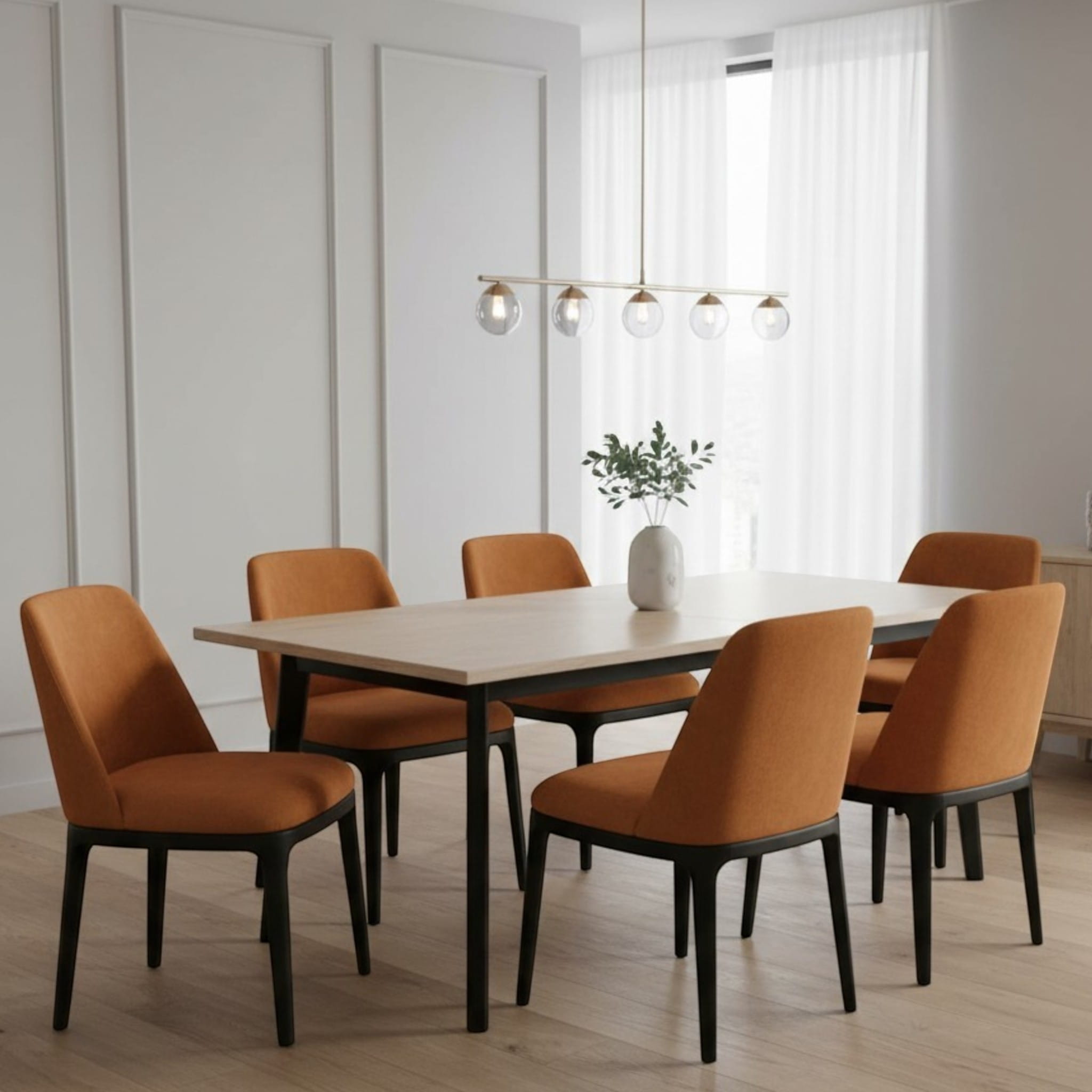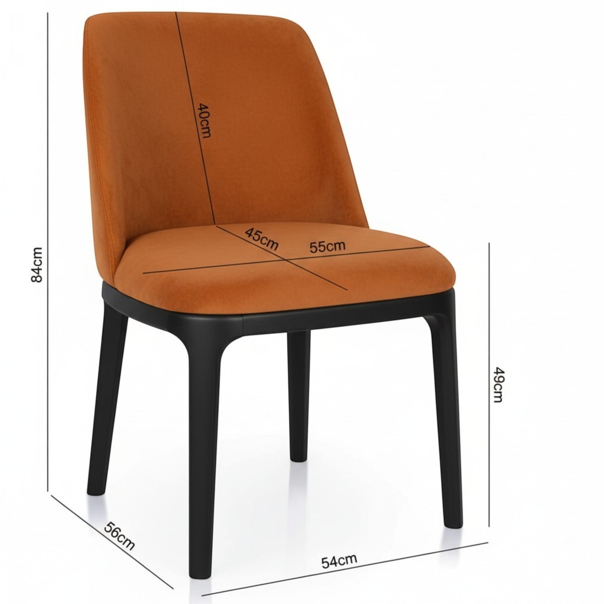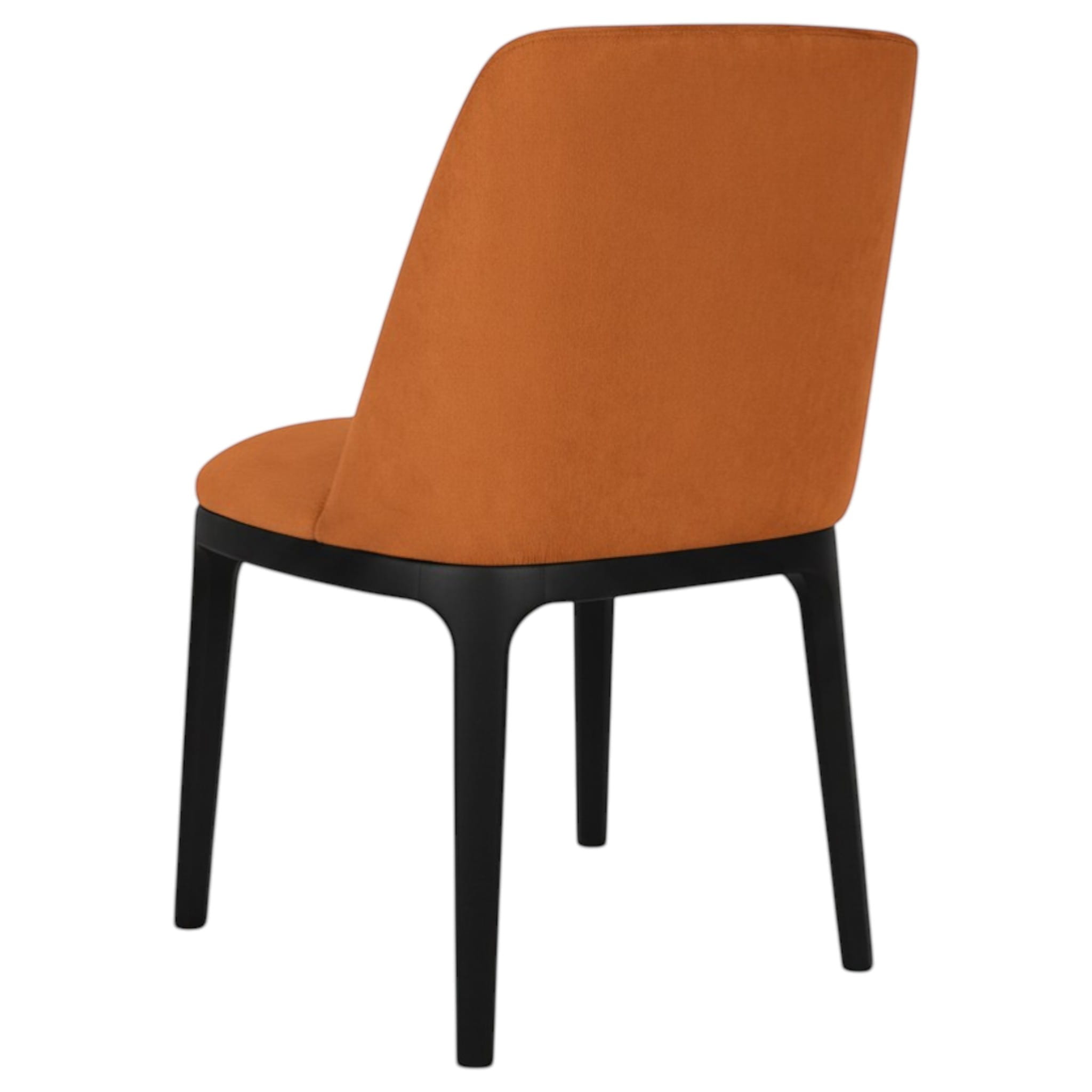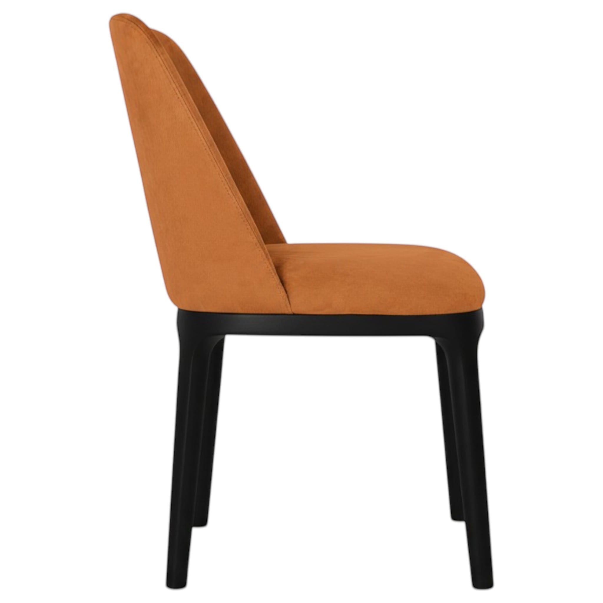 Model KT37 w odważnej, rudawej odsłonie to absolutny hit dla poszukiwaczy nieszablonowego wzornictwa. Aksamitna, delikatnie połyskująca tkanina Magic Velvet 2213 zachwyca głębią koloru, która fantastycznie kontrastuje z ramą wybarwioną na głęboką czerń. Te nowoczesne meble pokojowe charakteryzują się bardzo szerokim, miękkim siedziskiem (54 cm) oraz zaokrąglonym, otulającym plecy oparciem. Dzięki temu mebel zapewnia wyjątkową ergonomię i świetne podparcie kręgosłupa, zapraszając do relaksu i długich spotkań przy stole.