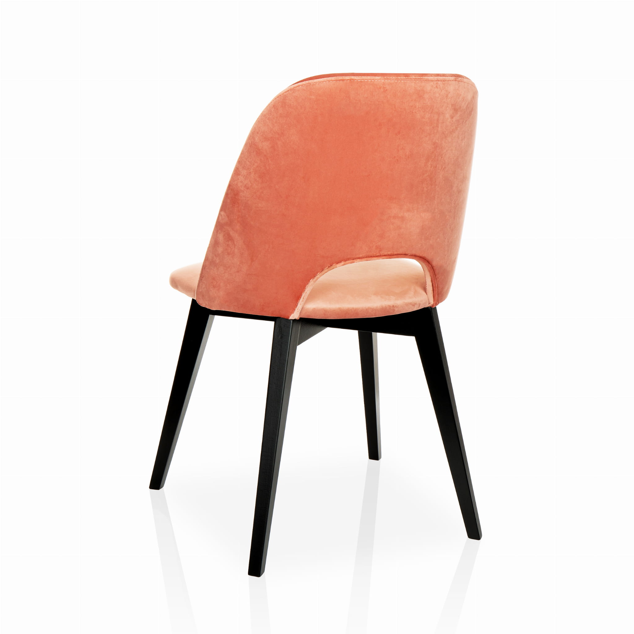 Krzesło KT96 to połączenie nowoczesnego designu i luksusowego komfortu. Miękka tapicerka w czerwonym odcieniu, wykończona eleganckim oparciem, nadaje wnętrzom wyjątkowego stylu. Stabilna konstrukcja z drewna w czarnym kolorze oraz ergonomiczne siedzisko i oparcie gwarantują wygodę użytkowania.