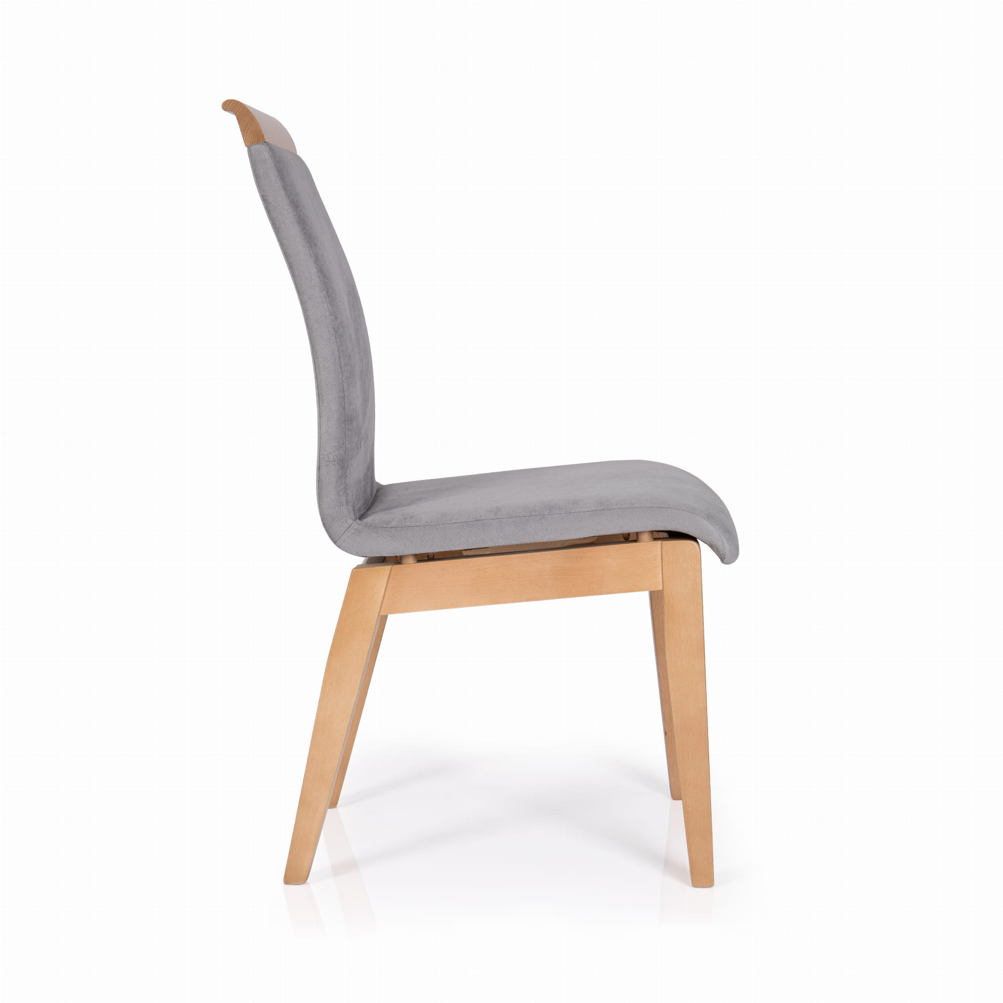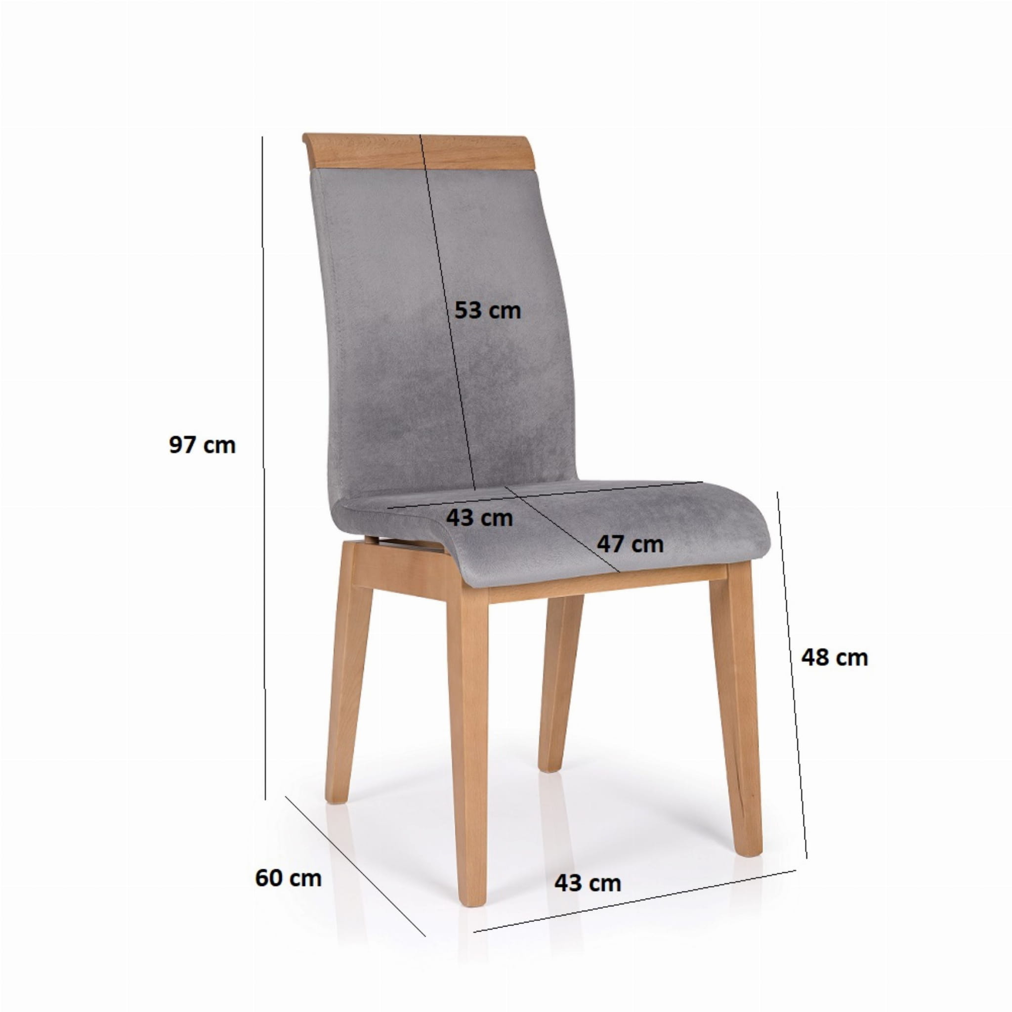 Krzesło KT19 to połączenie funkcjonalności i estetyki. Siedzisko tapicerowane tkaniną Tunis 2332 w odcieniu szarości doskonale współgra z drewnianą konstrukcją w naturalnym wykończeniu.