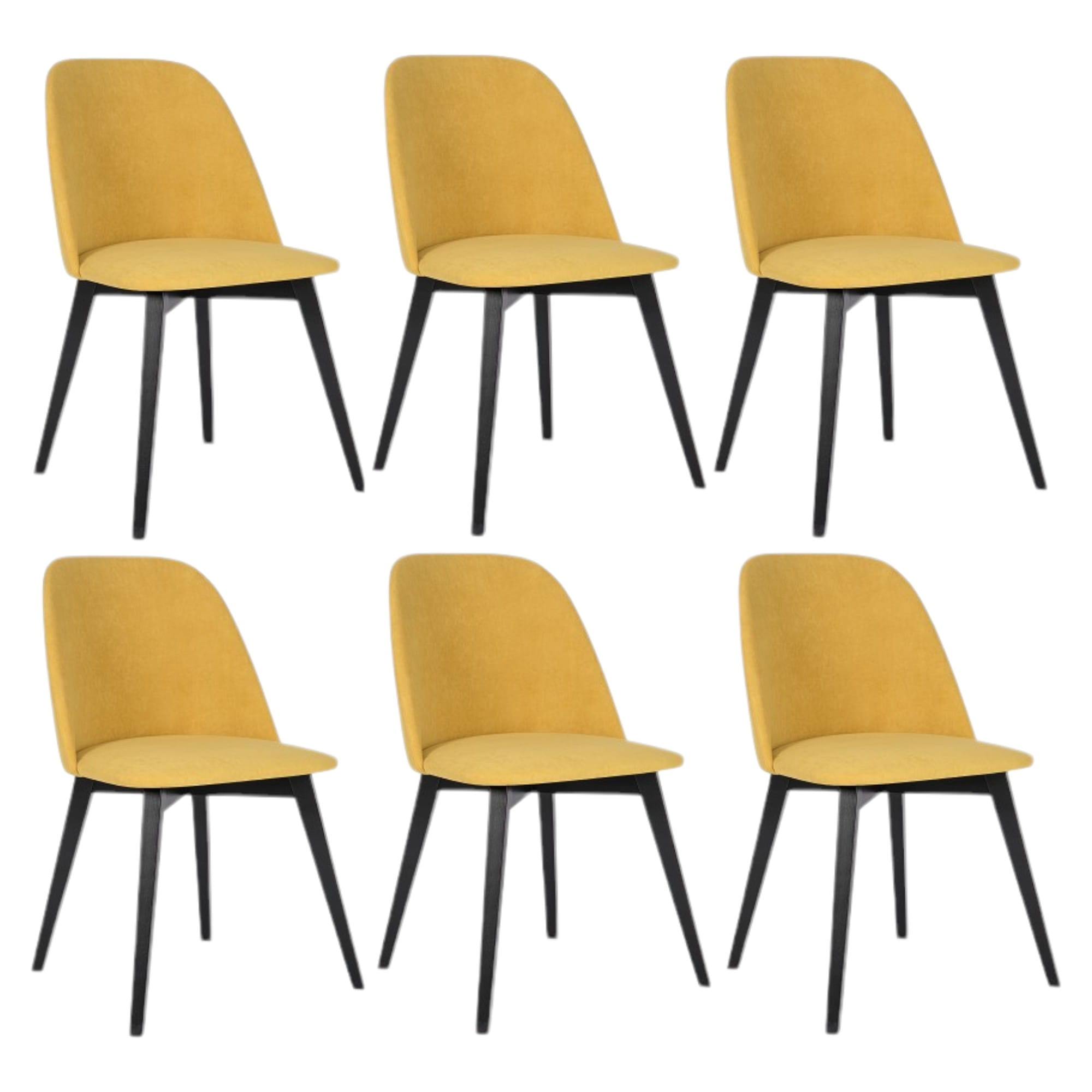 Krzesło KT61 to połączenie nowoczesnego designu z funkcjonalnością. Tapicerowane siedzisko i oparcie w modnej tkaninie Uttario Velvet zapewniają wygodę podczas codziennego użytkowania. Stabilne, czarne nogi wykonane z solidnego drewna wprowadzają elegancję i trwałość, idealnie pasując do wnętrz w stylu nowoczesnym i skandynawskim.