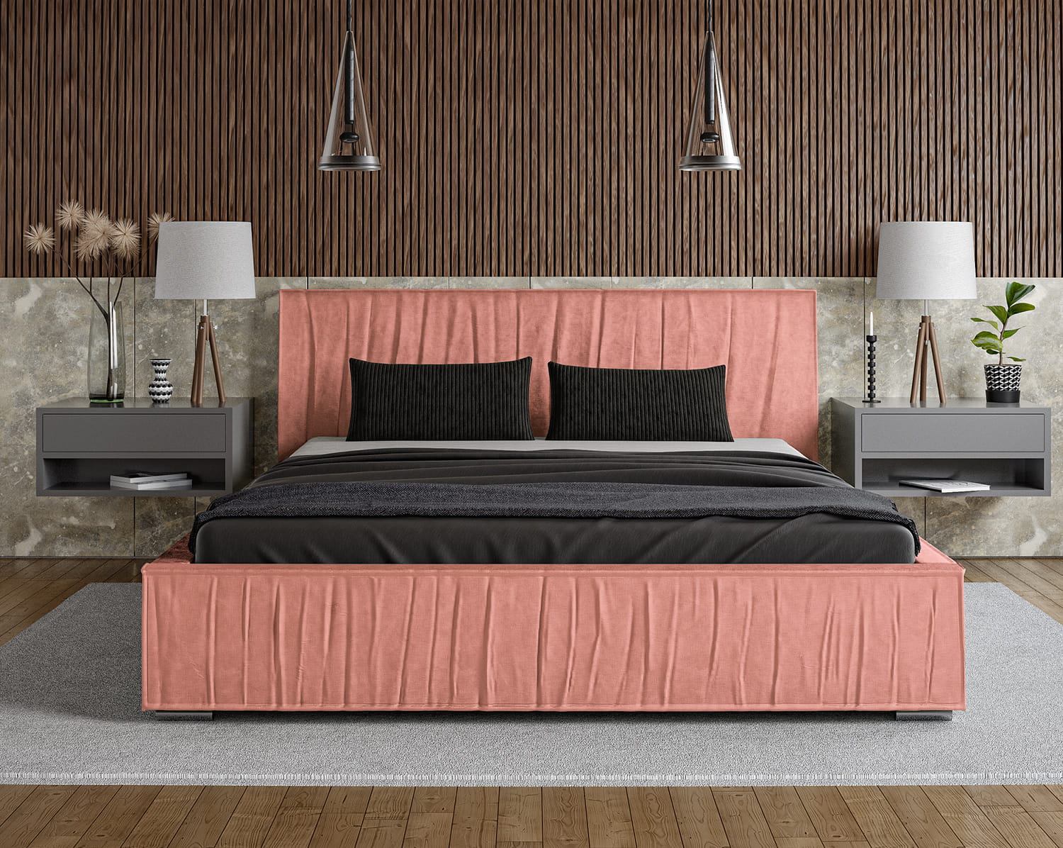 Łóżko tapicerowane z podnoszonym stelażem Adidar ELIAS 160x200 to doskonały wybór dla osób, które poszukują połączenia elegancji, funkcjonalności i wyjątkowego komfortu snu. Stylowe, tapicerowane wezgłowie z subtelnymi, pionowymi marszczeniami oraz miękką strukturą tkaniny zapewnia wygodne oparcie podczas wieczornego czytania książki, pracy z laptopem czy oglądania telewizji w łóżku.