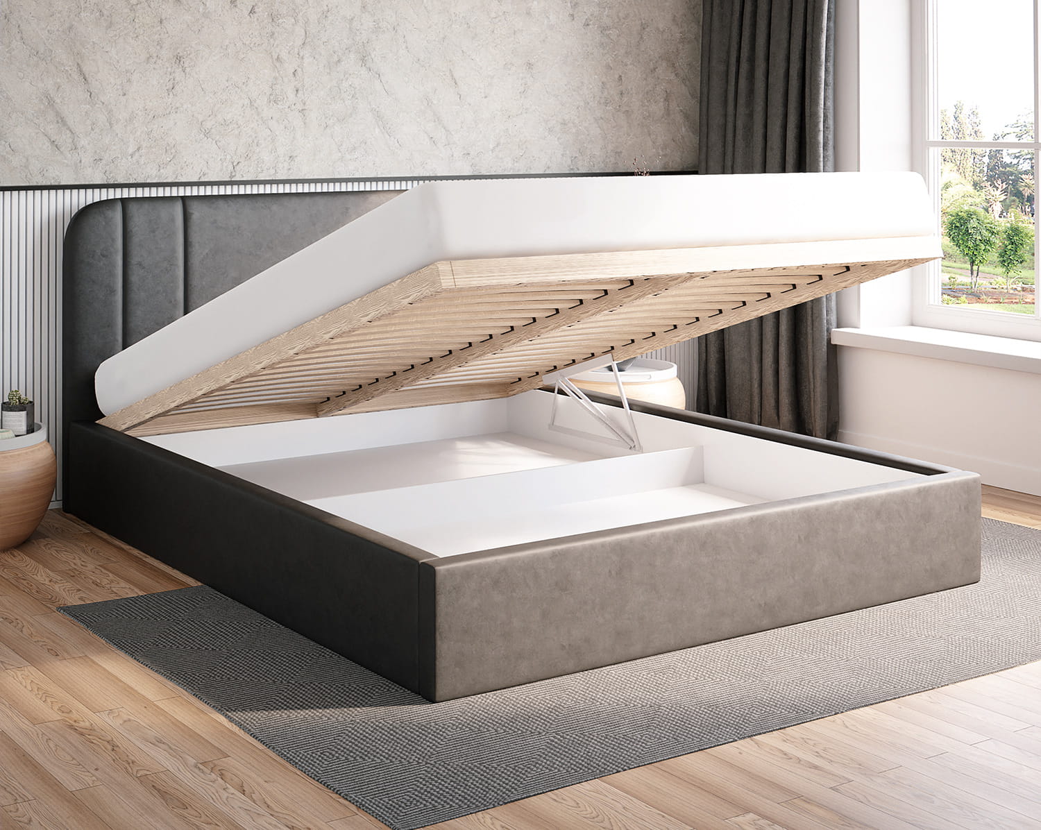 Łóżko jest wyposażone w przestronny schowek, idealny na pościel lub inne ważne przedmioty. To funkcjonalne rozwiązanie pozwala zaoszczędzić miejsce w sypialni. Dzięki temu schowkowi można łatwo utrzymać porządek w sypialni i mieć wszystko pod ręką.